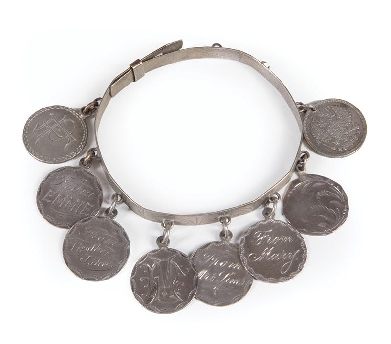 A RUBY, AQUAMARINE AND DIAMOND CHARM NECKLACE / BRACELET, EARLY 20TH CENTURY in platinum and silver,A RUBY, AQUAMARINE AND DIAMOND CHARM NECKLACE / BRACELET, EARLY 20TH CENTURY in platinum and silver, formed of a central fancy link bracelet in platinum, suspending five various jewelled charms includ