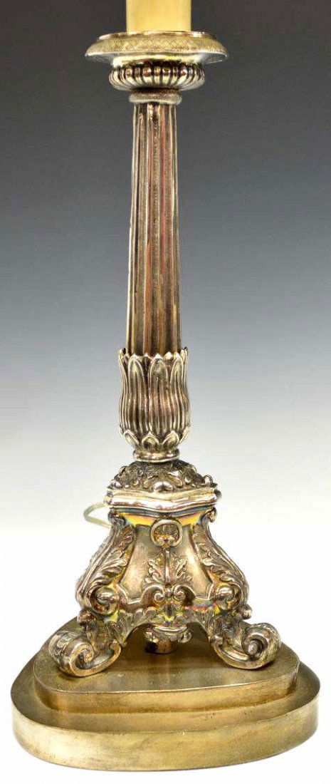 SoldANTIQUE SILVER CANDLESTICK LAMPANTIQUE SILVER CANDLESTICK CONVERTED TO A LAMP, APPROXIMATELY 30 IN HIGHSee Sold Price