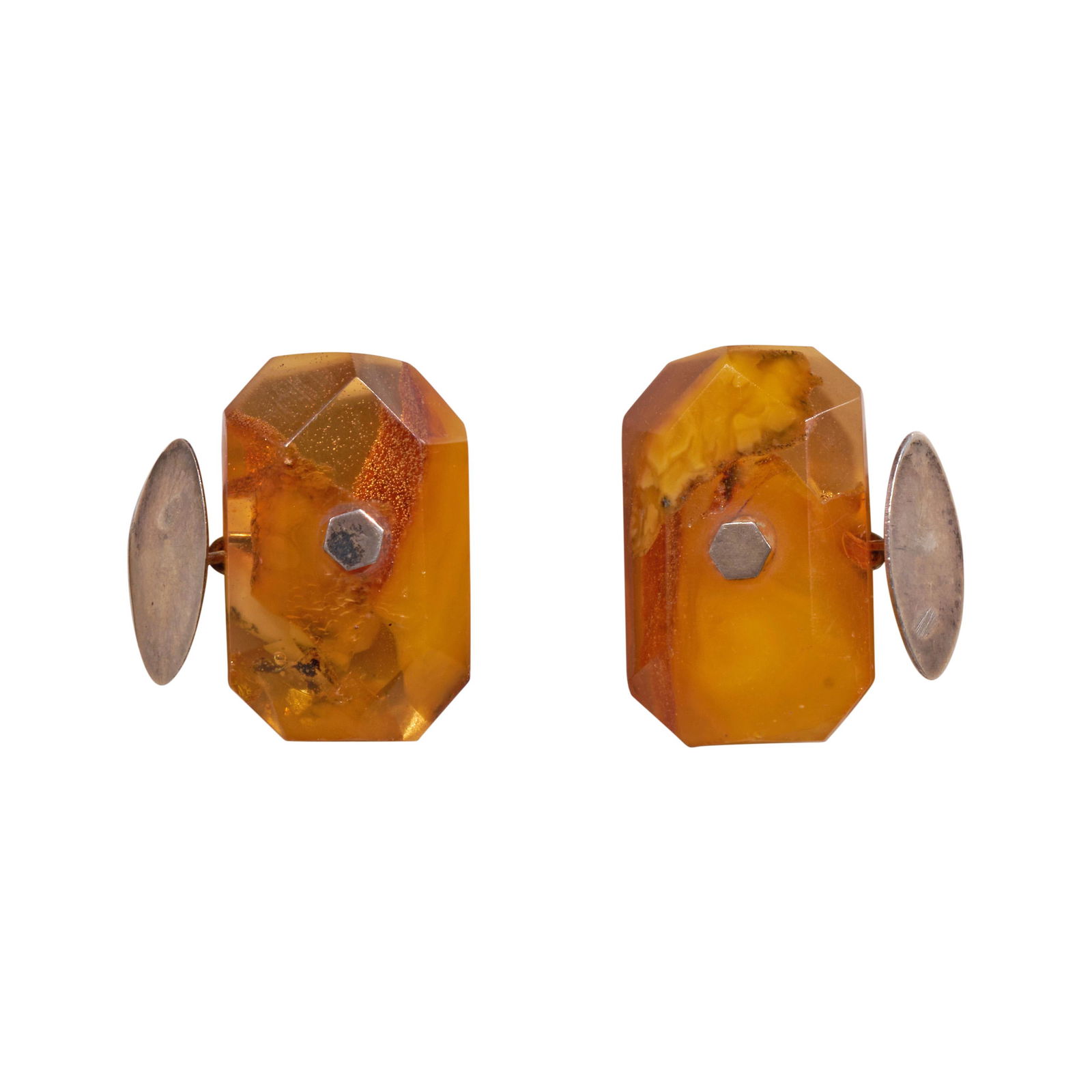 SILVER CUFFLINK SET WITH AMBER.