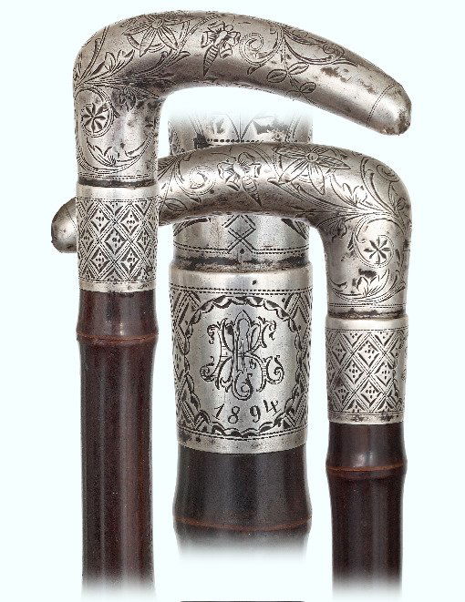 65. Silver Day Cane-Ca. 1890-Large L-shaped silver
