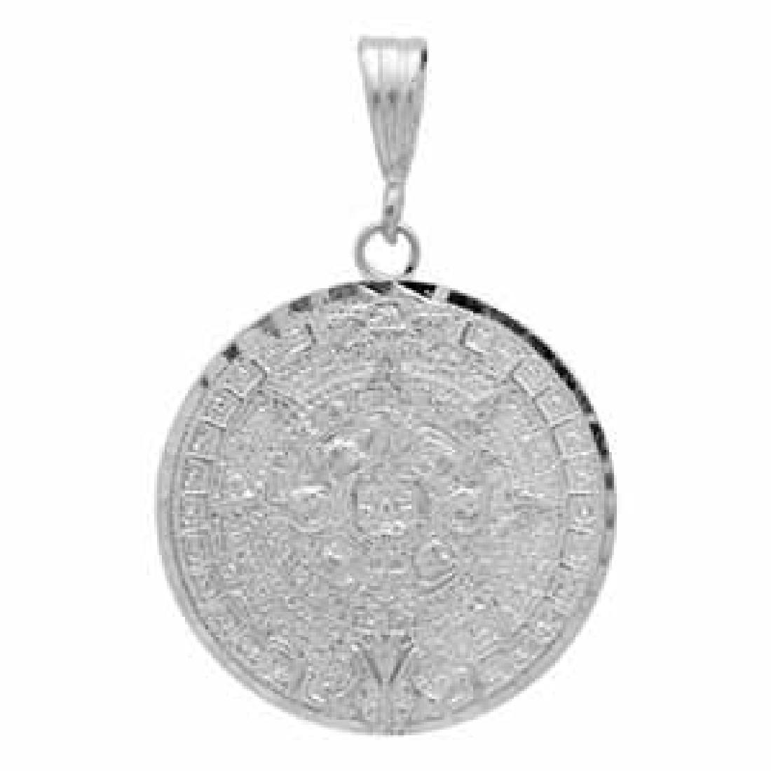 SILVER DC AZTEC CALENDAR PENDANT 28MM