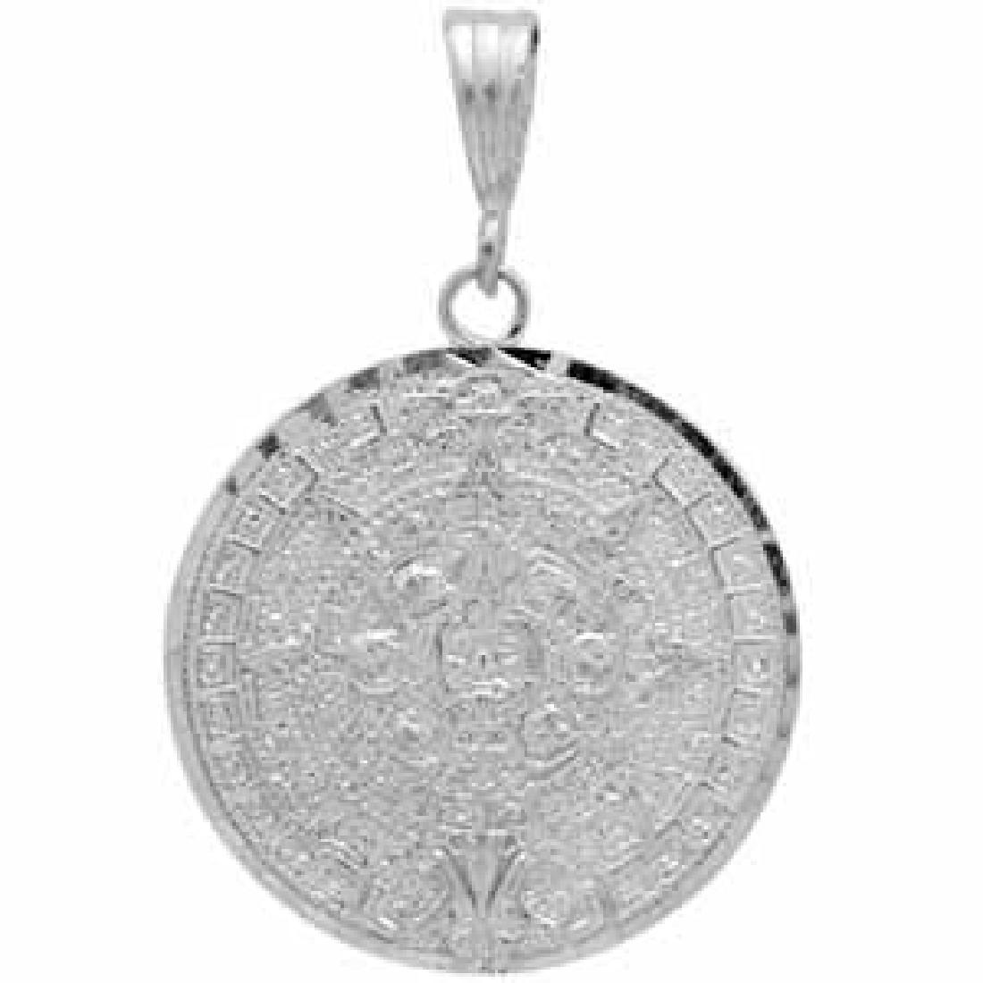 SILVER DC AZTEC CALENDAR PENDANT 38MM