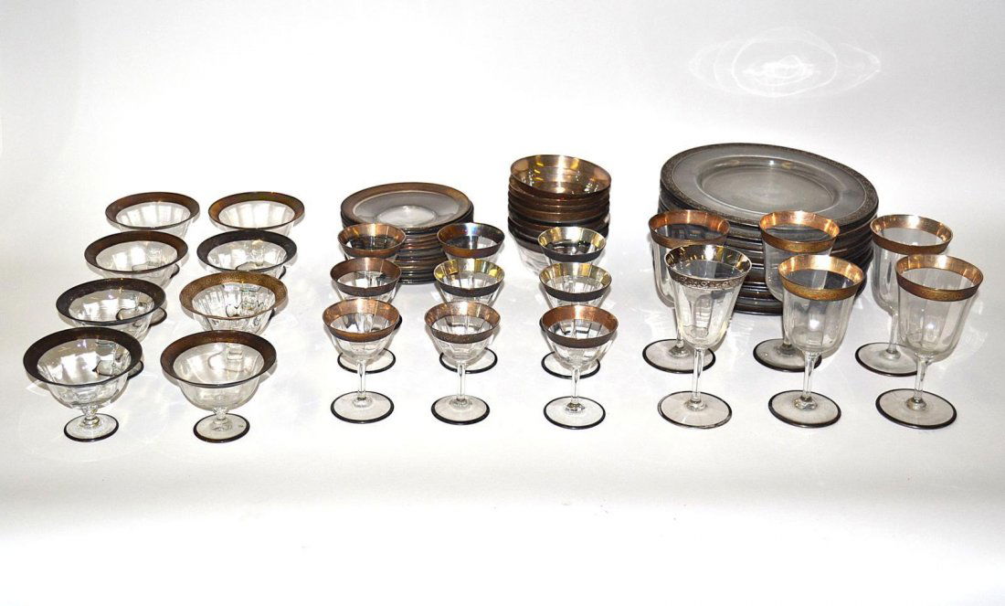 Silver Deposit Glass Partial Dinner Service