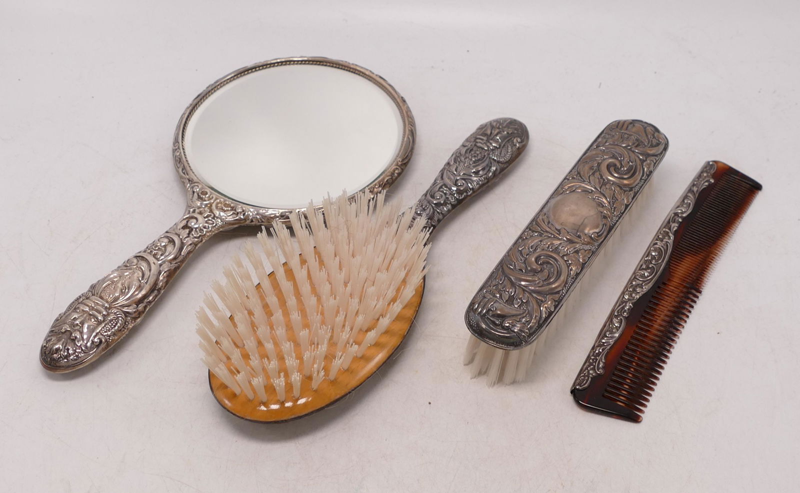 American Silver Four-Piece Dressing Table Set