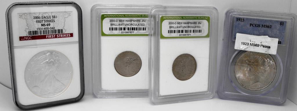 SIlver Eagle, Peace Dollar , (2) State Quarters