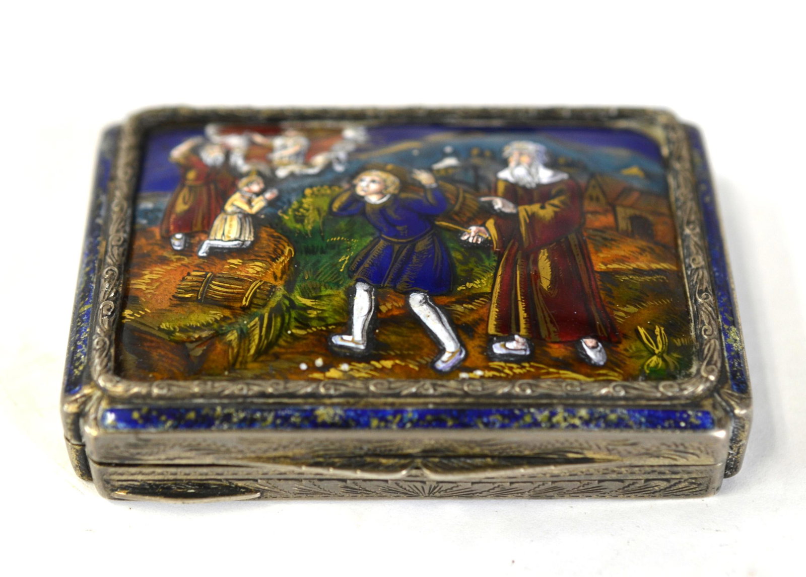 Silver Enamel Box Biblical Scene