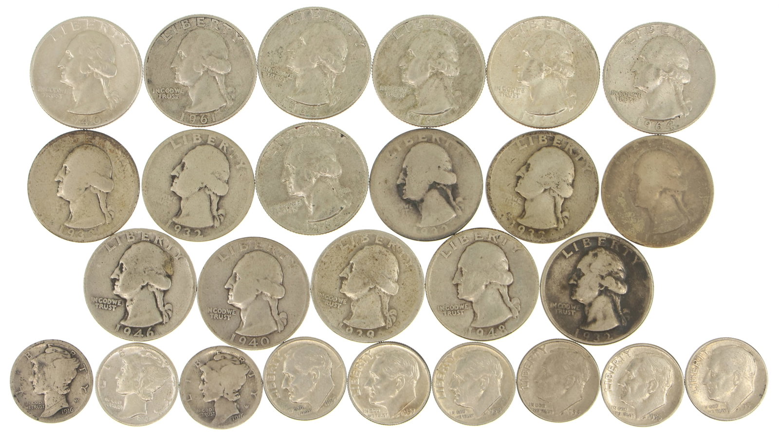 United States. Group of Silver Dollars. Grades Vary.Apr 17, 2026Lot of 12 Morgan Silver Dollars | Mixed Dates & Mints | 1878–1899 | Original U.S. Silver CoinsApr 22, 2026Lot of Twelve (12) 1964 Silver U.S. Washington Quarters Lot – 90% Silver Bullion –7 days LeftMix of US 90% Silver Coins, $63.50 FaceApr 16, 2026Lot of Twelve (12) 1961-64 Silver U.S. Washington Quarters Lot – 90% Silver Bullion –7 days LeftLot of Twelve (10) 1960-63 Silver U.S. Washington Quarters Lot – 90% Silver Bullion –7 days Left14pc American Mint .999 Silver Comm. 20 Gram Coins13pc Assorted US Morgan Silver DollarsLot of 24 U.S. Silver Dimes (Mercury & Roosevelt) 1923–1964 – 90% Silver – 59.77 days LeftA COLLECTION OF UNITED STATES COMMON DATE COINS.NINETEEN MEXICO, CENTRAL AMERICA, AND SOUTH AMERICA SILVER COINS.$10.40 Face US 90% Silver CoinsApr 16, 202613 U.S. Mercury Silver Dimes 1917–1945, 90% Silver Coin Lot7 days Left(26) silver FRANKLIN half dollars, from local estate collection of gold & silver we are selling.7 days LeftLot of Six (6) 1966–1968 U.S. Kennedy Half Dollars, 40% Silver Coins7 days Left$15.35 Face in 90% US Silver CoinsApr 16, 2026