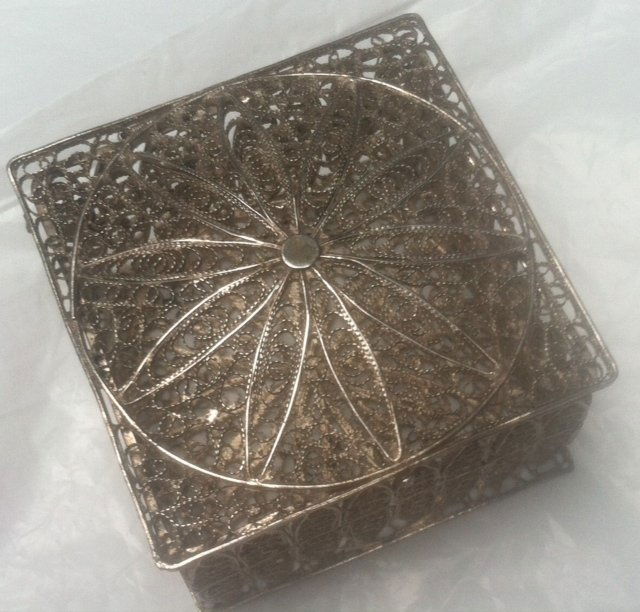 Silver Filigree Square (Cricket?) Box, Chinese Export