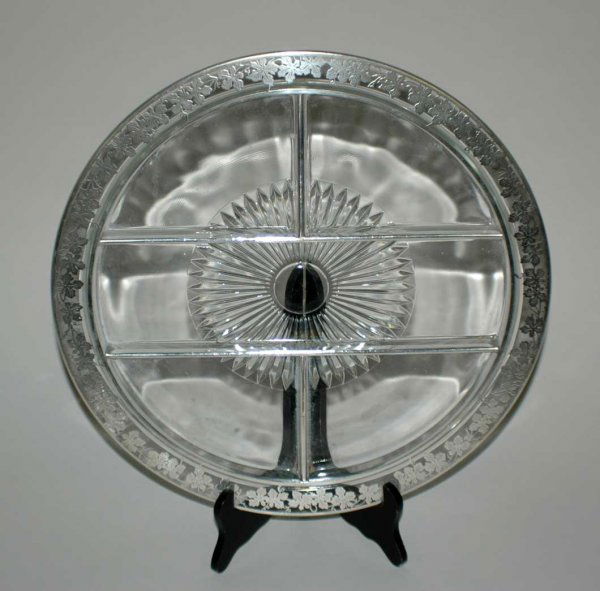 Silver flashed sectional glass serving dish. (20/