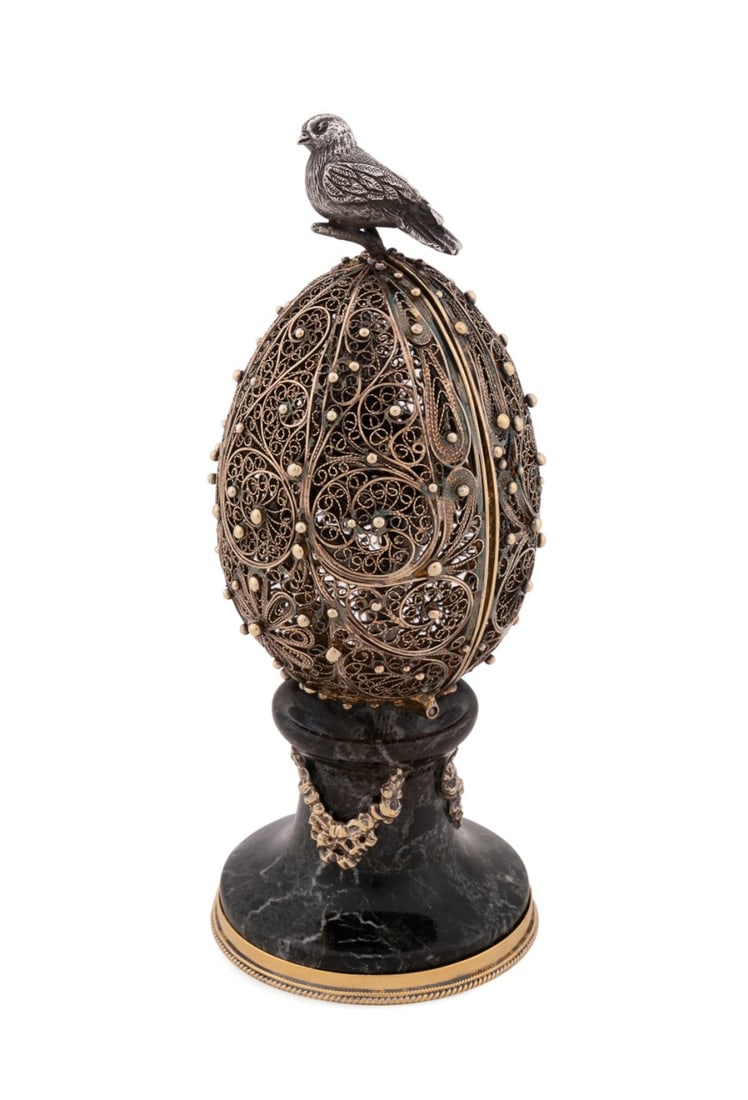 SILVER GILT FILLIGREE EGG ON MARBLE BASE
