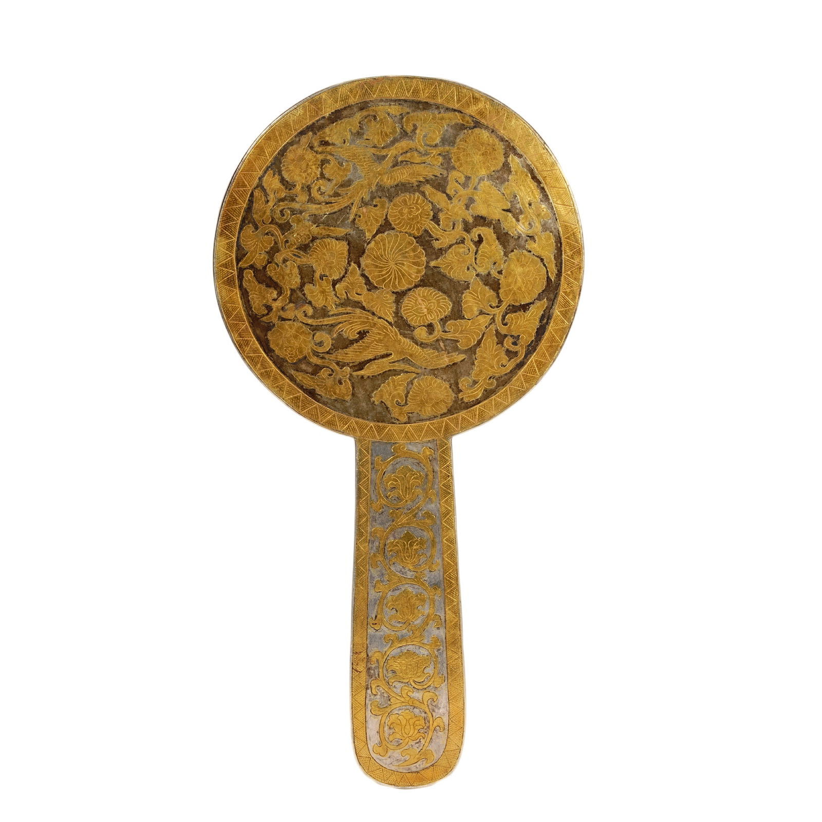 Silver gilt flower and bird mirror box