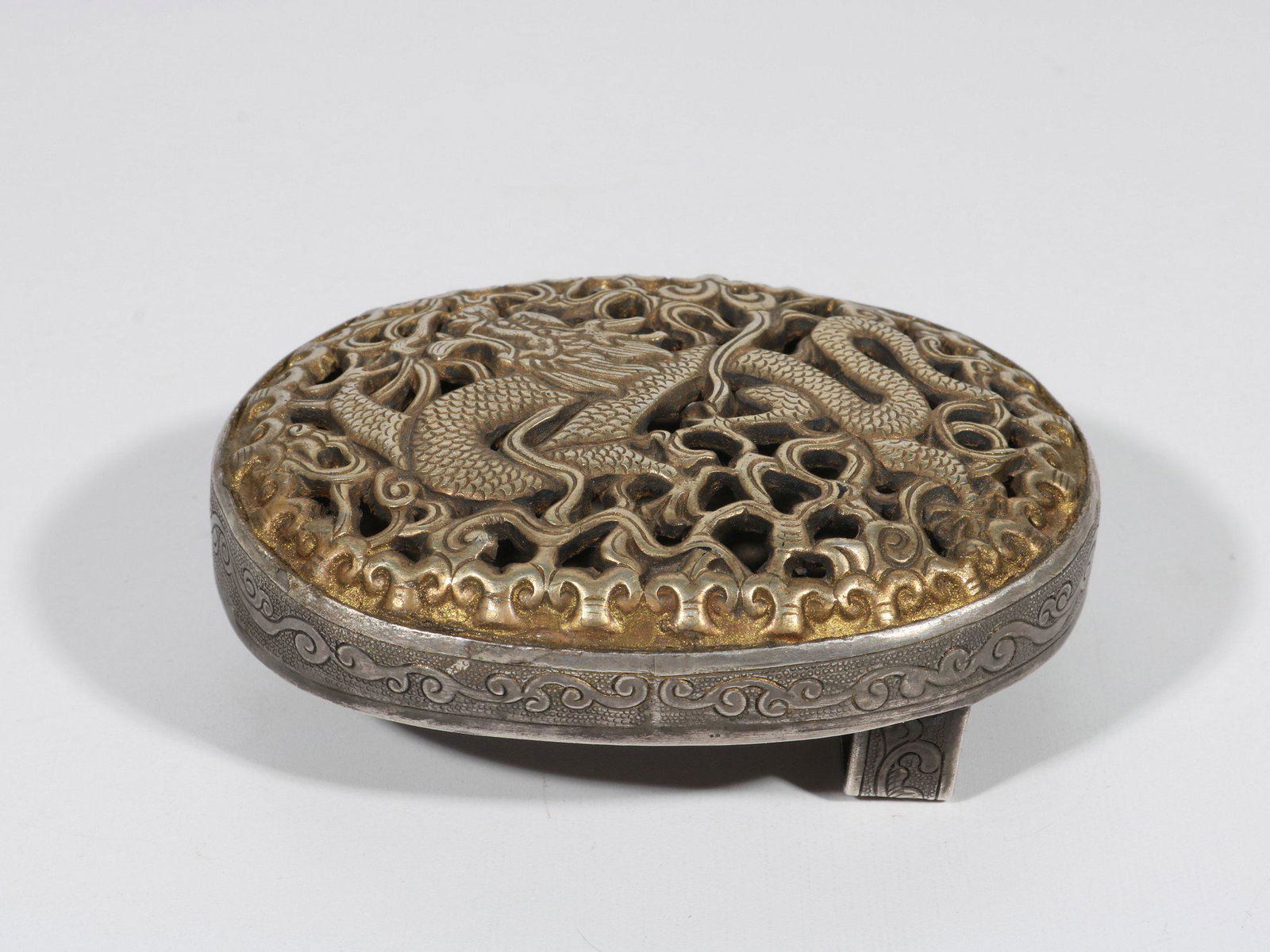 Silver-gilt openwork dragon belt buckle