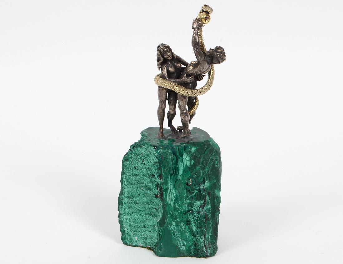 SILVER, GOLD AND MALACHITE TABLE FIGURAL SCULPTURE