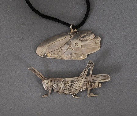 Silver Grasshopper Brooch 2" L. and a Silver Frog B
