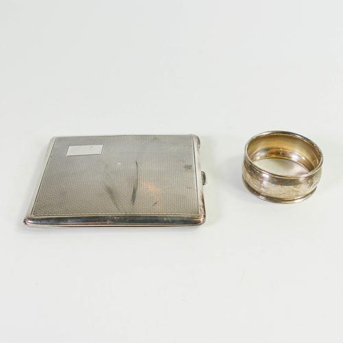 Silver hallmarked cigarette case together a silver napkin ring (2)