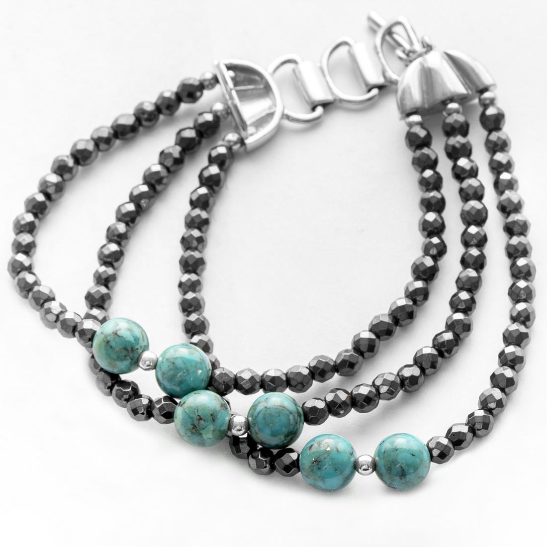 Silver Hematite & Turquoise Bead Bracelet 8"