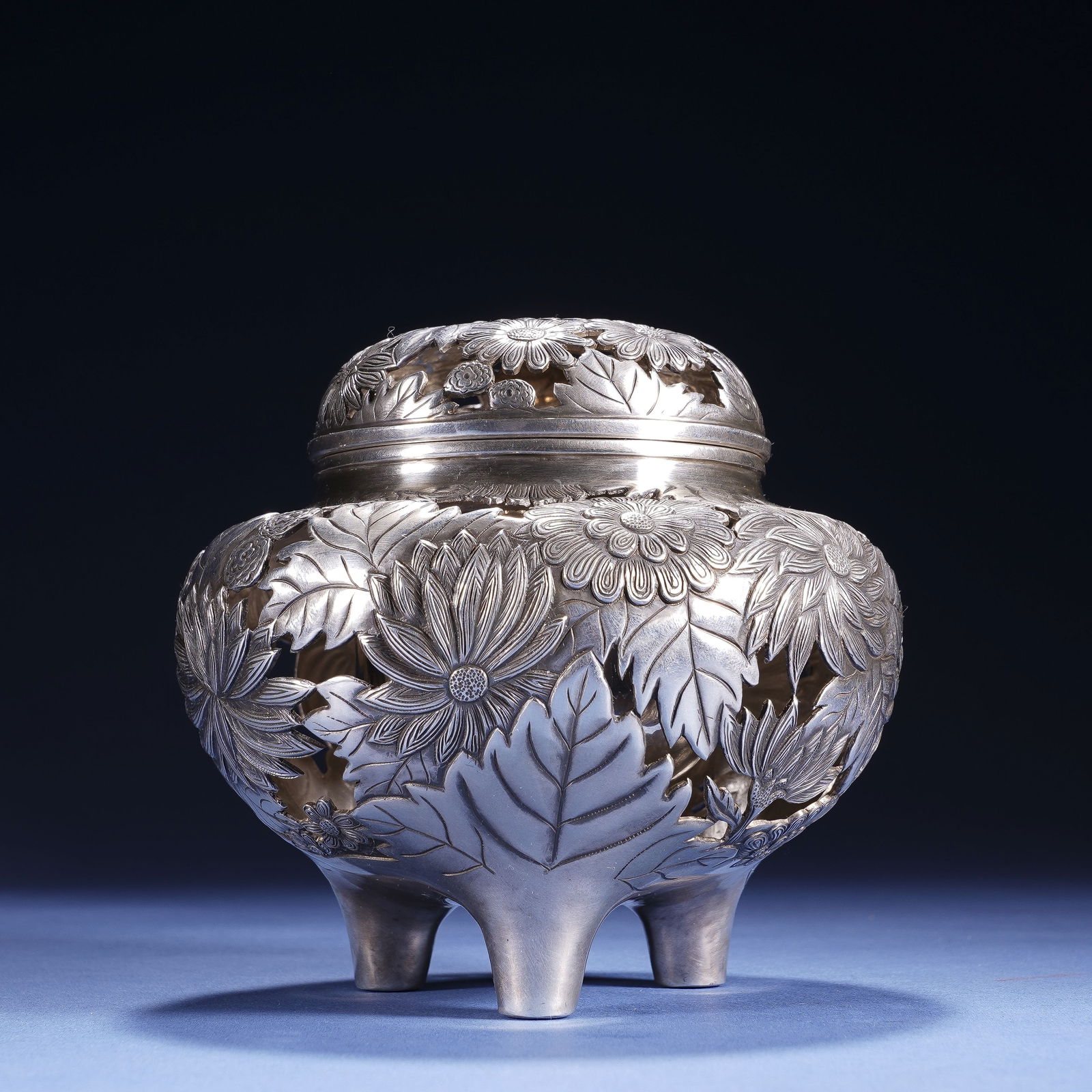 Silver Incense Burner with Chrysanthemum Pattern