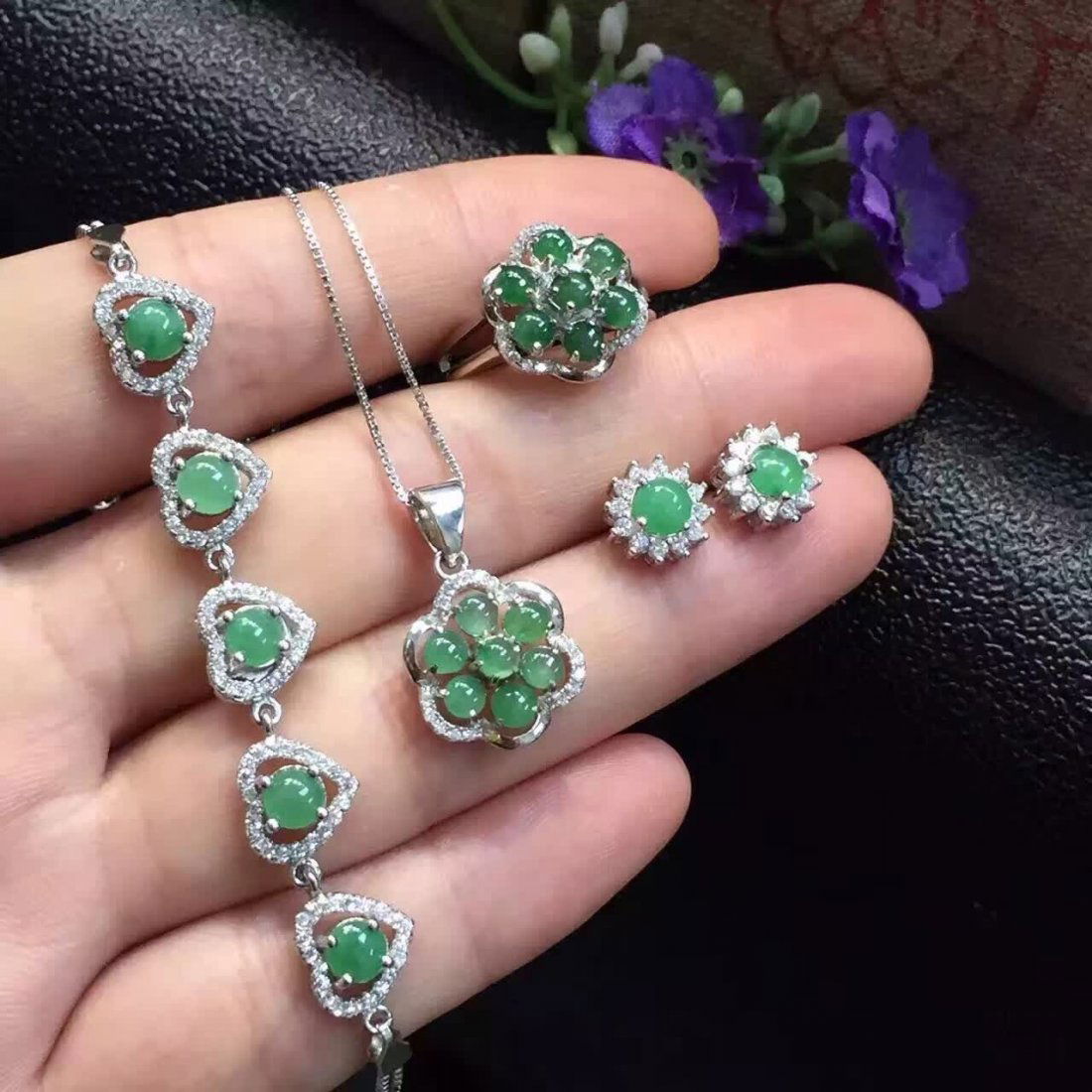 Silver inlaid jade green full Set