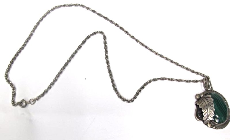 Silver Malachite Necklace, Marked ET on Back, 27"