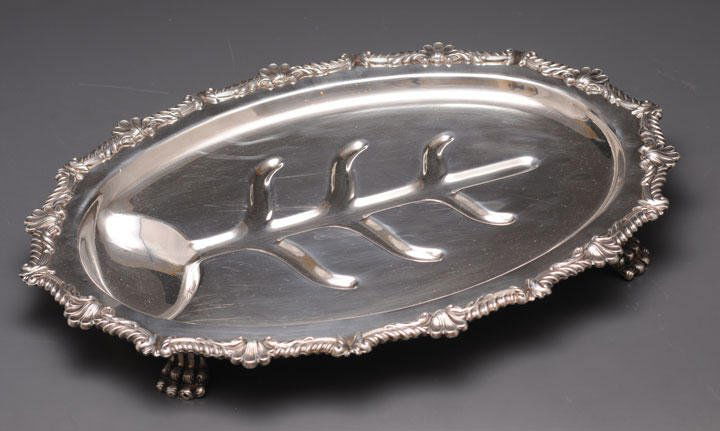 SILVER METAL Serving Tray. Lion paws feets. Mark o
