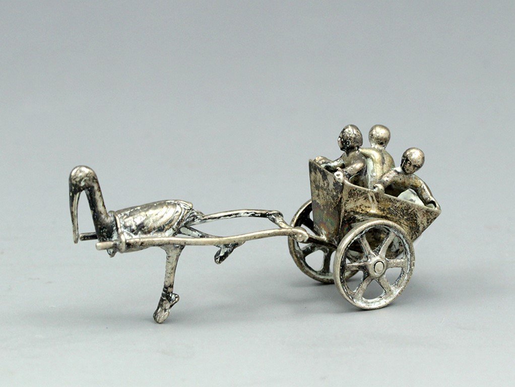 Silver miniature - stork with babies