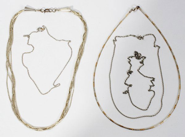 SILVER NECKLACES, FOUR, L 15"