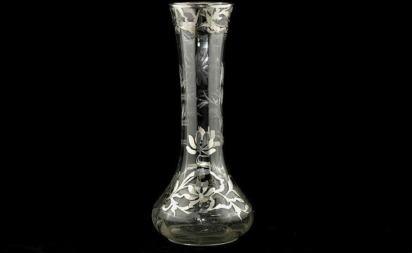 Silver Overlay Clear Cut Pressed Glass Vase