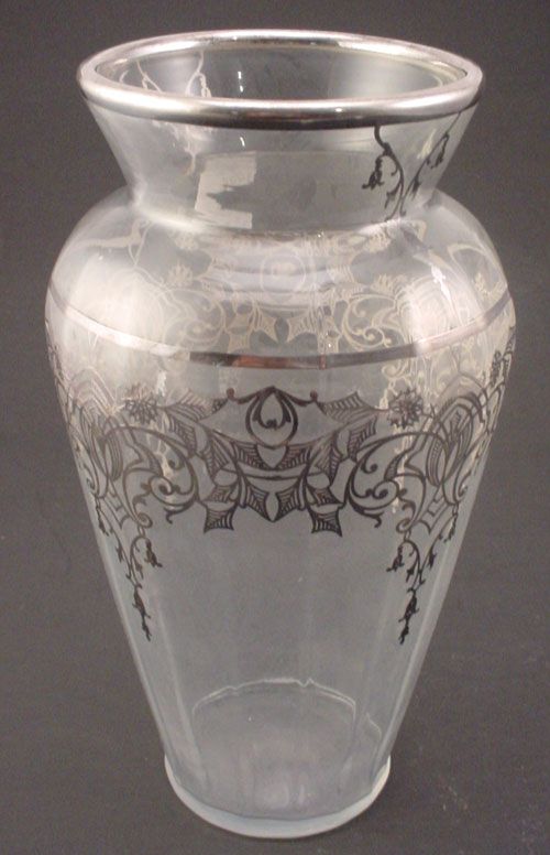 SoldCirca 1920 Clear Glass Silver Overlay Vase 12.25 inches heightCirca 1920 Clear Glass Silver Overlay Vase 12.25 inches height. size: 12.25 x 5.5See Sold Price