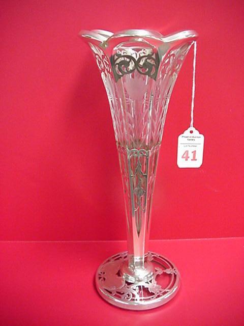 Silver Overlay Cut Crystal Victorian Vase