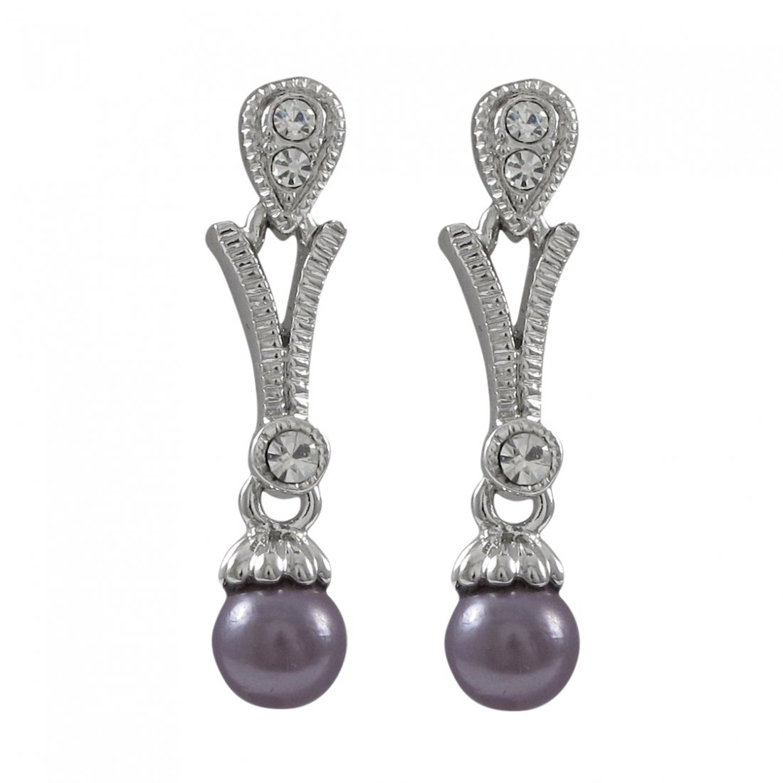 Silver pave earing w/purple