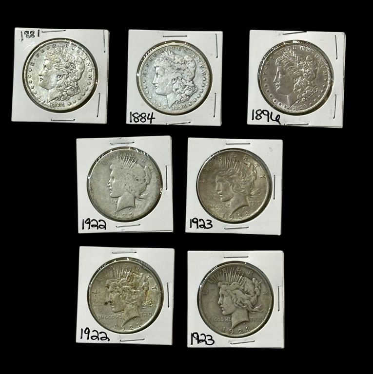 Lot of 10 Morgan Silver DollarsMar 28, 2026Lot of 14 Silver Dollars, some raw and some certifiedMar 28, 2026Lot of 12 Morgan Silver Dollars | Mixed Dates & Mints | 1878–1899 | Original U.S. Silver CoinsApr 22, 20261879-1880-1884 Morgan Dollars Lot of 3 Being 90 % SilverApr 06, 20261889 & 1921 US Silver Morgan Dollars, 32 days Left(11) U.S MORGAN SILVER DOLLARS, ALL FINE CONDITIONMar 28, 2026Group of Thirteen United States Morgan and Peace Silver Dollars, 1880?1935Apr 11, 2026Group (6) Morgan Silver DollarMar 31, 2026Six (6) 1921 Morgan Silver Dollars ? Mixed Mint Group ? .900 Fine SilverApr 11, 2026Group (6) Silver DollarMar 31, 2026Group of U.S. Silver Coins3 days LeftASSORTED 90% SILVER MORGAN/PEACE DOLLARS - (8)Mar 28, 2026ASSORTED 90% SILVER MORGAN/PEACE DOLLARS - (8)Mar 28, 2026Group (6) Morgan Silver DollarMar 31, 2026[4 Coins] 1896-1926 Morgan & Peace Silver DollarsMar 28, 20261882 & 1883 O 90% SILVER MORGAN DOLLARS - (4)Mar 28, 2026