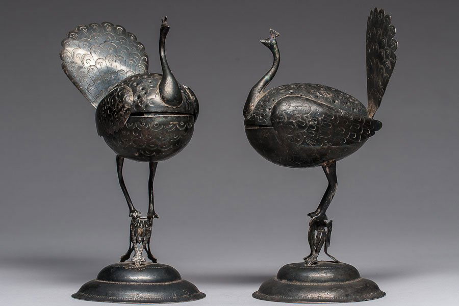 A lot of two antique Indian Kang-Style decorated silver tea bowls7 hrs LeftA composed lot of two antique silver variously decorated sugar spreaders7 hrs LeftItalian Silver Snuff Boxes2 days Leftstamped silver in Chinese on the bottom lot of 2 Chinese dragon snuff boxes7 days LeftA TRIO OF INDIAN CAST BRASS PEACOCK KUMKUM OR SPICE BOXES, 19TH CENTURYMar 06, 2026An Indian silver peacock chutney serving dishMar 03, 2026A Pair of Exquisite Silver Phoenix Pattern CenserMar 21, 2026Vintage Mid-Century Silver Tone Peacock Figurines Pair 8 Inch993 Lots AwayA pair of Chinese enamelled gilt-silver quail-form boxes and covers, 19/20th C.Mar 18, 2026Pair Of Chinese Sterling Silver open salt dish Swans4 days LeftSilver-Tone Metal Fighting Cock Figures, 2Mar 26, 2026Asian Silver Plate Urn4 days LeftGeorgian Sterling Nutmeg GratersMar 14, 2026A Qing Dynasty peacock-patterned silver square boxMar 07, 2026Silver Ostrich Elegance Trinket BoxMar 18, 2026A Pair of Exquisite Silver Crane OrnamentsMar 25, 2026