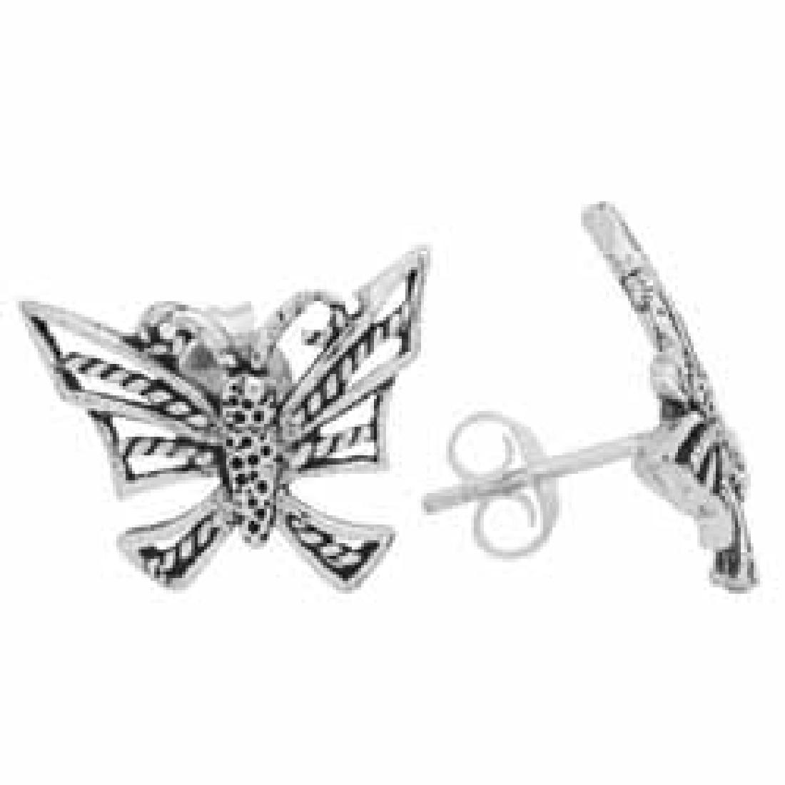 SILVER PLAIN FILIGREE BUTTERFLY STUD EARRINGS