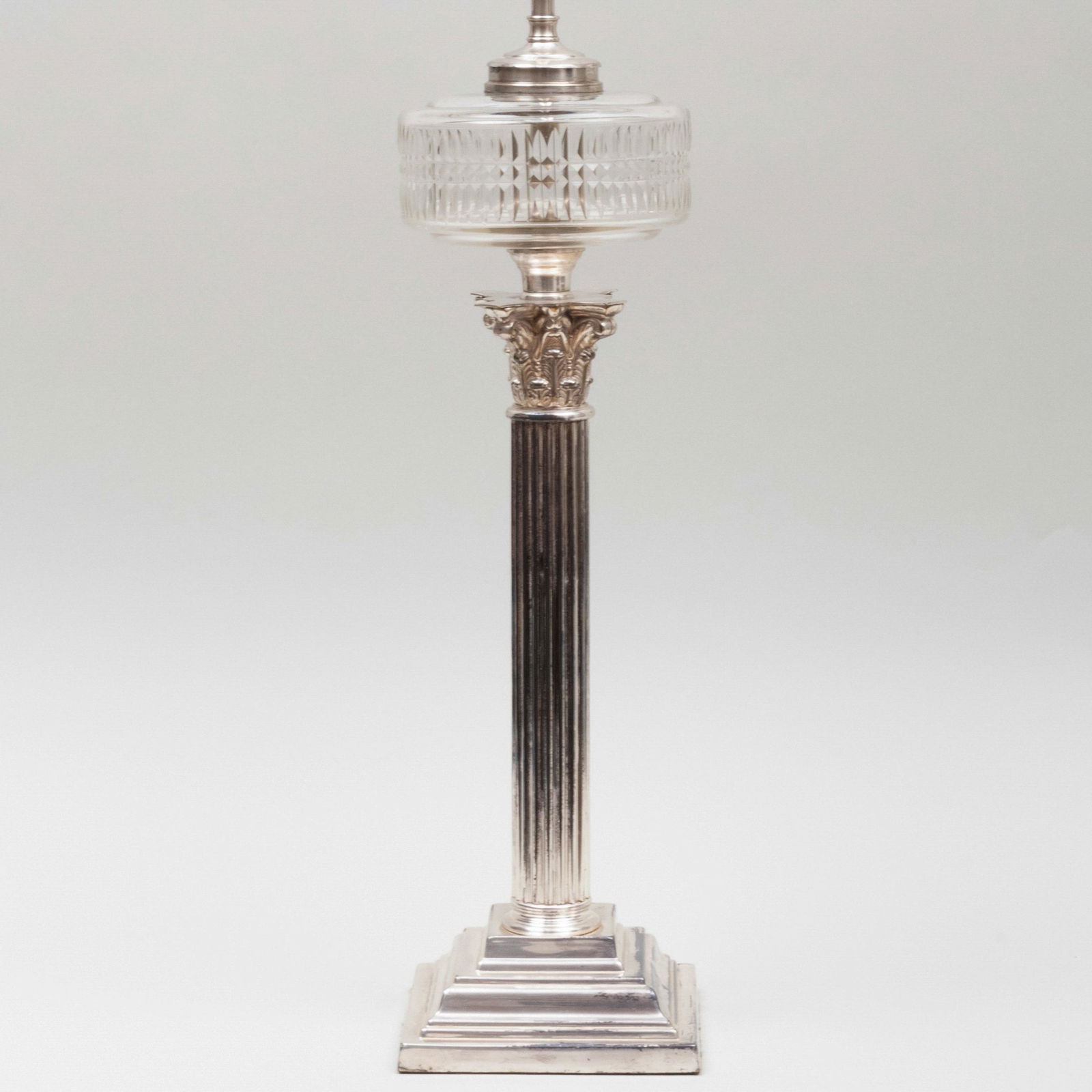 Silver Plate Columnar Oil Lamp