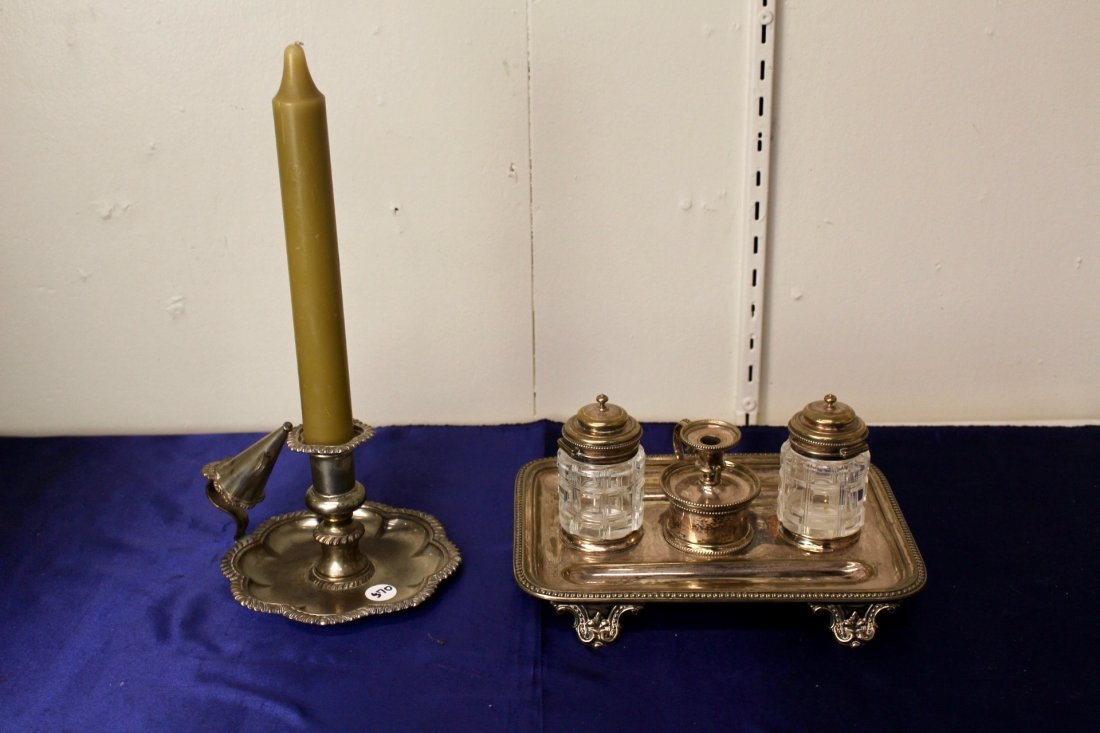 Silver Plate Desk Set Candle Holder