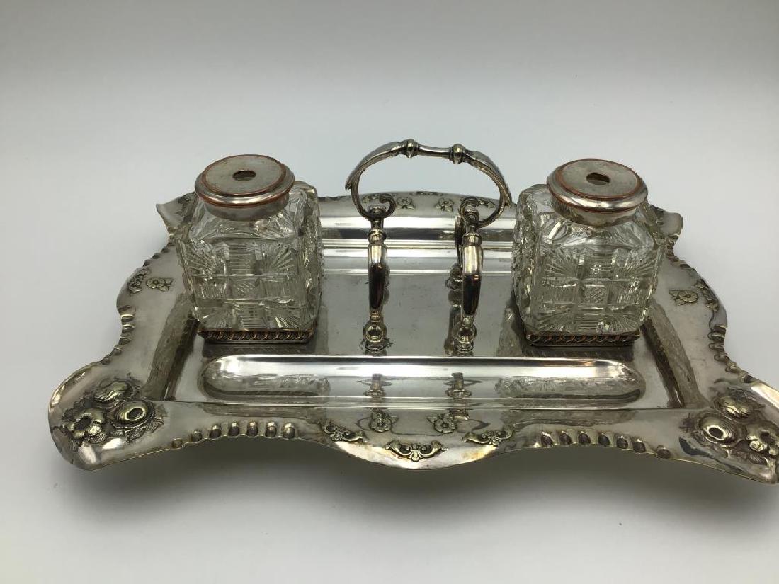 SoldContinental Silver Plate Sheffield Double Ink WellContinental Silver Plate Sheffield Double Ink Well. Size: 3 in. x 6.5 in. x 10 in.See Sold Price