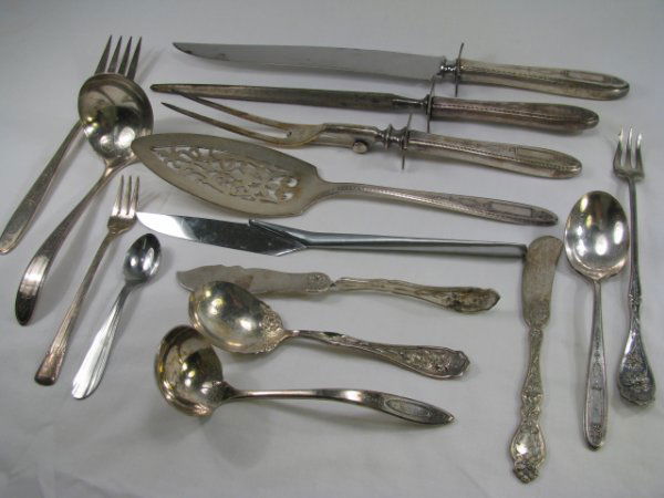 SILVER PLATE SERVING FORKS, SPOONS, KNIVES 15 PCS