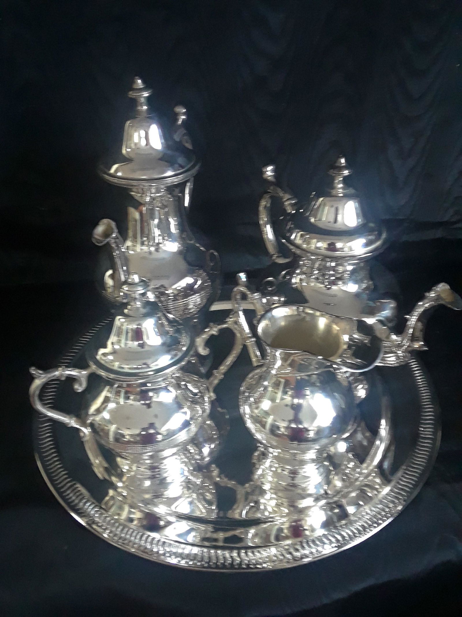 Lot Silver Plate ItemsMar 04, 2026ENGLISH SILVER LUSTRE CERAMIC TEA AND COFFEE ARTICLES, LOT OF SIXMar 04, 2026Silverplate Tea Service with Extra TrayMar 06, 20265 Pc Silverplated Tea SetMar 04, 20265 Pieces Preisner Sterling Silver Tea Set with a Large Oval English Sterling Silver Tray6 days LeftFive-Piece Silverplate Tea and Coffee Service with Large Serving TrayMar 07, 2026SILVERPLATE TEA AND COFFEE SERVICE130 Lots AwayFive-Piece Silverplate Tea and Coffee Service in the “King Francis" Pattern with TrayMar 07, 2026Rococo Style Silver Plate Coffee And Tea Set (7-piece), C. Mid-late 20th Century4 days LeftAmerican Aesthetic Silver-Plate Four Piece Coffee Service, late 19th c., Coffee- H.- 12 1/4 in., W.-5 days LeftANTIQUE SILVER-PLATE CHILDREN'S TEA SET IN ORIGINAL FITTED BOXMar 05, 2026COLLECTION OF SILVERPLATEMar 06, 2026Repousse coin silver tea set with tray.2 days LeftSilver Plate Tea Set With Orientalist Motifs And Associated Tray (5-piece)4 days LeftJames Dixon & Sons Silver Plate Coffee Service, 5Mar 07, 202619th Century Silver Plated Tea Set5 days Left