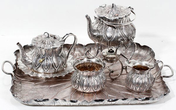 SILVER PLATE TEA SET, SIX PIECES