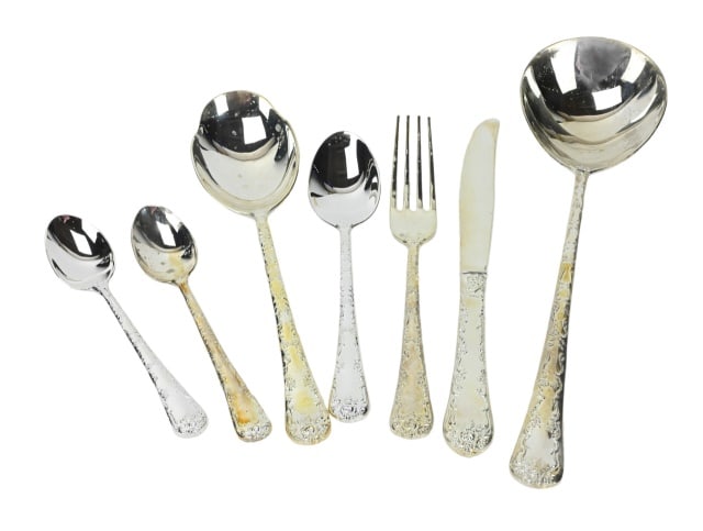 Various Silverware Serving Set Silver Plated Flatware Lot of 20Apr 07, 2026(7) COLLECTION OF AMERICAN STERLING SILVER FLATWARE6 days LeftFourteen Piece Group of Sterling Flatware, App. Total Sterling Wt.- 10.29 Troy oz. (14 Pcs.)3 days LeftVintage Rogers "Royal Manor" Silver Plate Flatware Service for 10 to 12 "” 62 PiecesASSORTED STERLING SILVER FLATWARE 20th Century Approx. 27.4 troy oz.2 days LeftSilver Flatware, Including Serving Pieces5 days LeftAmerican Sterling Silver 71 Pieces Flatware ServiceApr 12, 2026(7) .800 & .900 Silver Flatware Utensils5 days Left(87pc) International Prelude Sterling Silver Flatware Set1 day LeftGroup of Silver Plate Special Flatware Pieces5 days Left31pcs. SILVER FIDDLE PATTERN FLATWARE, 1215gApr 02, 2026Silver Flatware Service for Six, Heavily ChasedApr 12, 2026Gorham Strasbourg Sterling Silver Flatware Service22 hrs LeftSilver cutlery set, consisting of 18 piecesApr 04, 2026Dominick & Haff Sterling Silver Flatware ServiceApr 12, 202613 PIECES OF STERLING SILVER AND PLATED FLATWARE2 days Left
