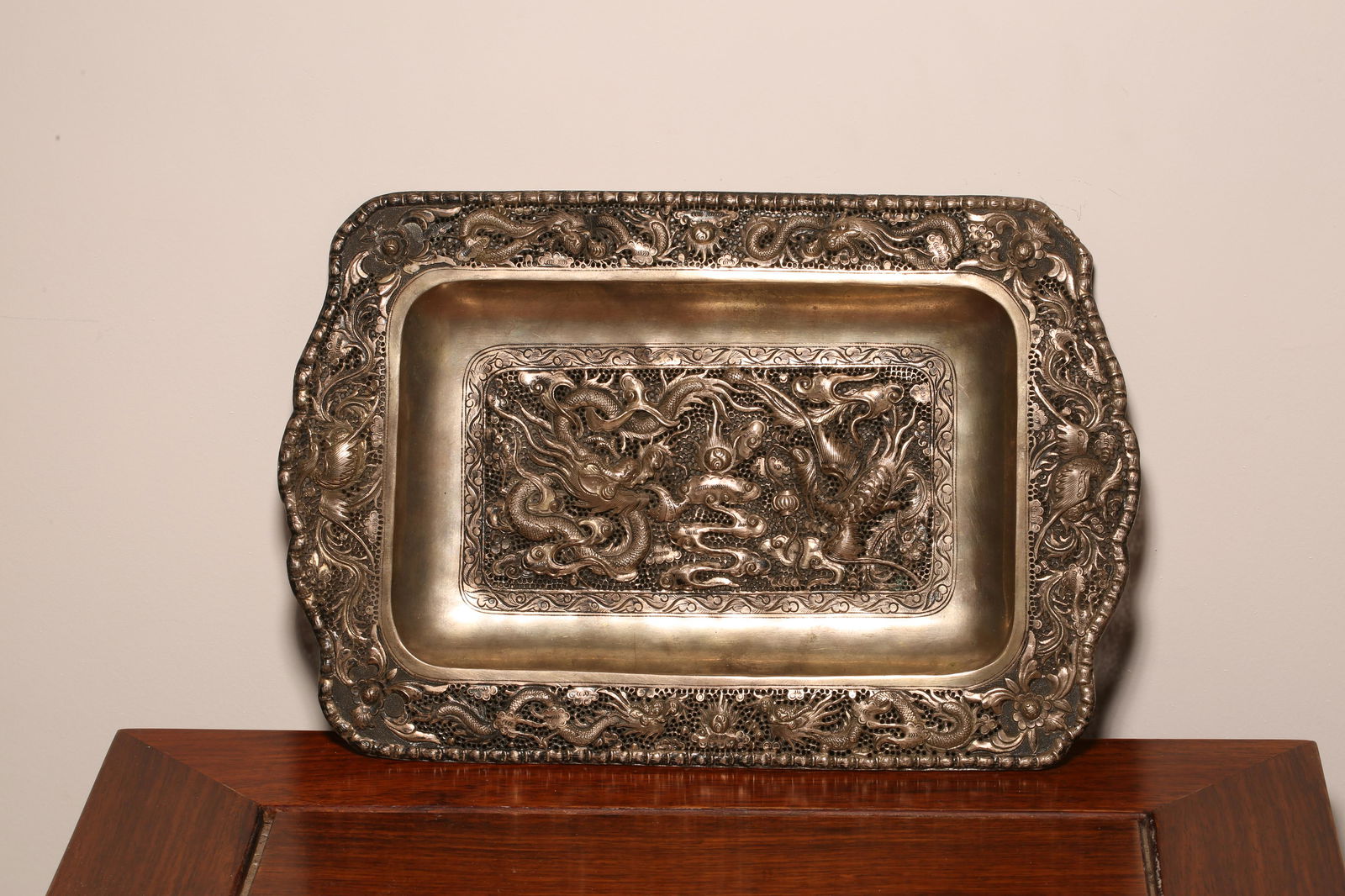 Silver plate with dragon and phoenix