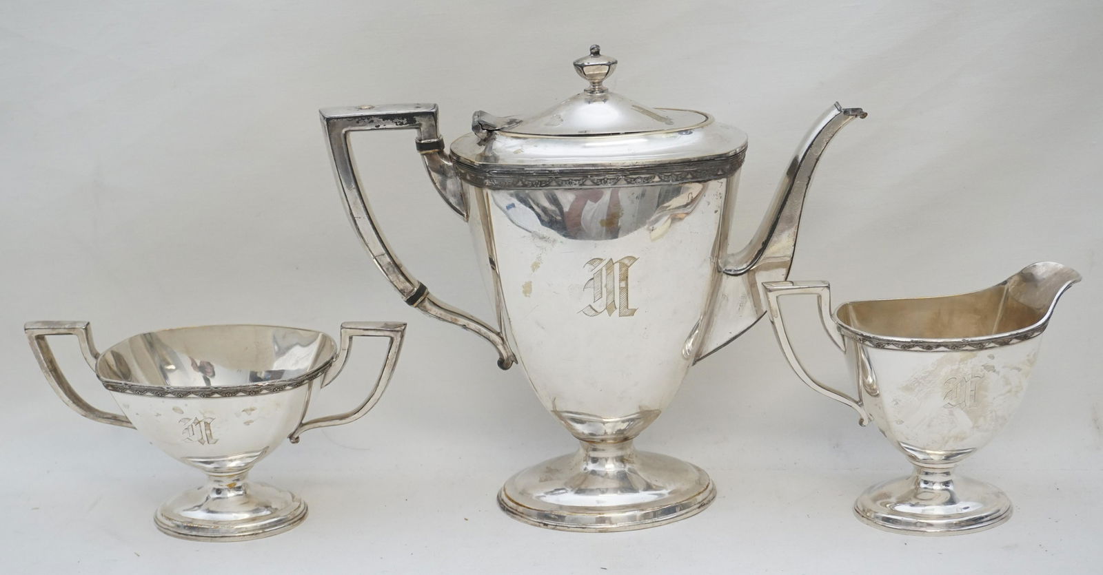 ENGLISH SILVER LUSTRE CERAMIC TEA AND COFFEE ARTICLES, LOT OF SIXMar 04, 2026Vintage WM A Rogers Silverplated Tea Pot & Creamer3 days LeftAmerican Aesthetic Silver-Plate Four Piece Coffee Service, late 19th c., Coffee- H.- 12 1/4 in., W.-5 days LeftE.G. WEBSTER & SON SILVER-PLATED FIVE-PIECE COFFEE AND TEA SERVICEMar 04, 2026SILVERPLATE TEA AND COFFEE SERVICE17 hrs Left3 pcs Vintage Silver Plated Tea Pots, incl. 1x W.W.H. & Co. & 1x Homan. Very Good Condition.3 pcs Vintage Silver Plated Tea Pots, incl. 5th Ave Co., Meriden & Wilcox. Very Good Condition.Wilhelm BINDER. 6-piece tea and coffee set in Queen Anne style. 925, 835 and 800 silver.6 days LeftThomas Warner (Baltimore) American Silver Three-Piece Tea Service, c. 1810-1830Mar 08, 2026Silver Plated Tea Service Grouping (6)Mar 07, 20263 pcs Vintage Silver Plate Tea Pots, incl. 2x Silver on Copper Pieces. Very Good Condition.3 pcs Vintage Silver Plated Tea Pots, incl. 1x Brooklyn & 1x Aurora? Co. Very Good Condition.American Silver Four-Piece Tea and Coffee ServiceMar 14, 2026Three Pieces of Georgian Style Silver Hollowware4 days LeftThree silver articlesMar 03, 2026A six piece German 800 standard silver tea and coffee service, Wilhelm Binder, Schwabisch Gmund3 days Left
