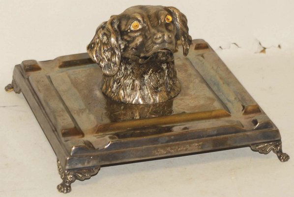 Silver Plated Figural Dog Head Inkwell.