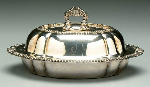 Silver-plated lidded server, gadrooned bo