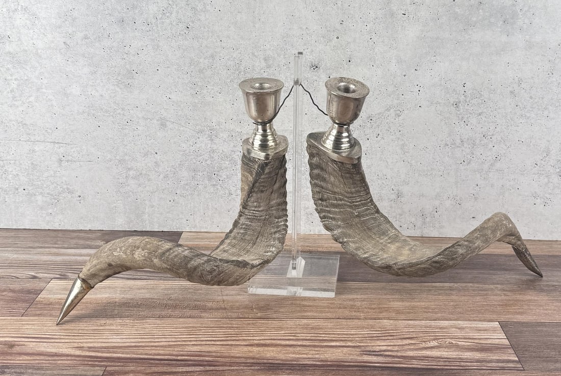 Silver Plated Ram Sheep Horn Candlesticks