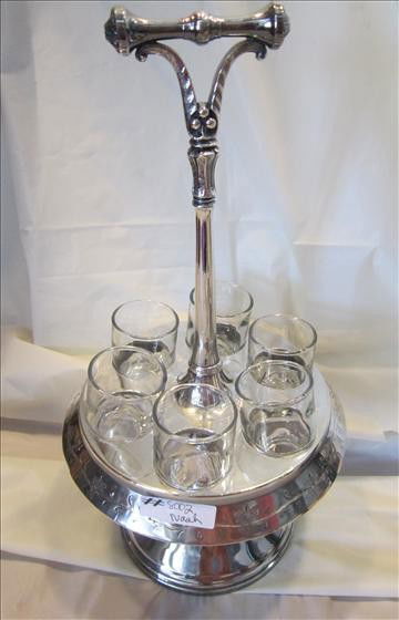 SILVERPLATED OPEN TRAY WITH 6 SHOT GLASSES
