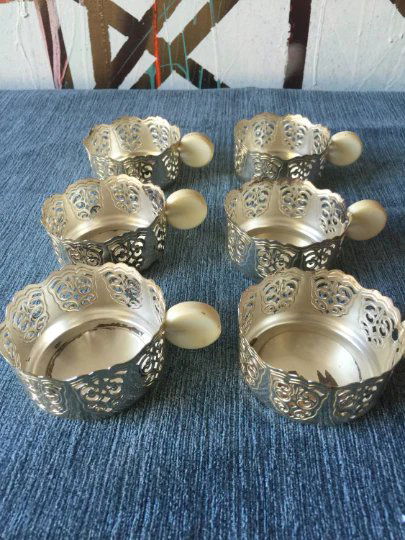 Silver Plated Tea Cup Holders with Bakelite Handle