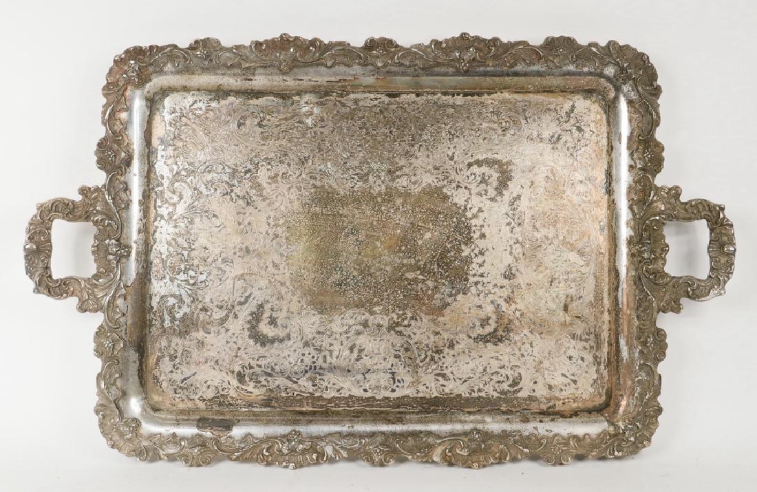 Antique Silver Plated Cartouche Serving Tray with Scrolled HandlesVidi Vici Gallery4.5(301)$53 days Left