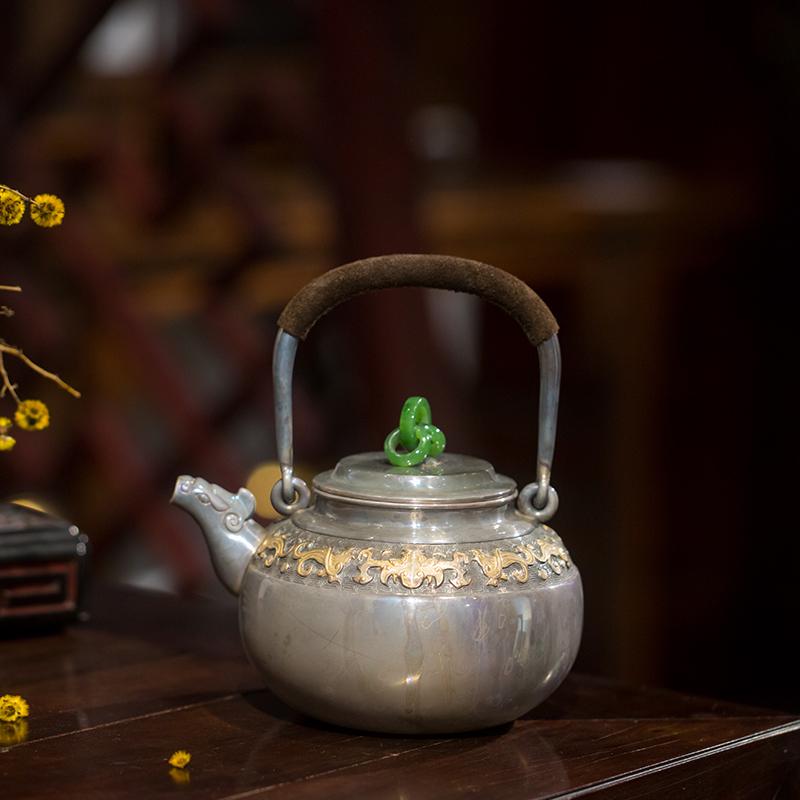 Silver pot with dragon and phoenix head and cui button