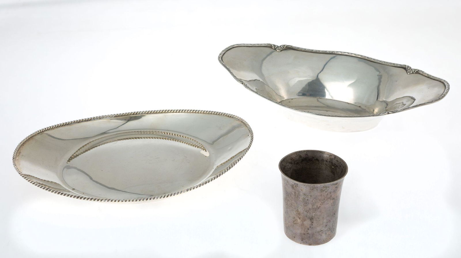 Lot of Silver Items.Mar 10, 2026Sterling Silver Lot2 days LeftLot of Silver Items.Mar 10, 2026Lot Of Seven Weighted & With Glass Sterling Silver Items2 days LeftLot 4 Vintage Emb Silver Plated Tableware India+6 days LeftLot of sterling silver tableware. Various handled baskets and dishes, all except for one without3 days LeftLot of Georgian sterling silver. 1) Pair of shakers. John Crouch and Thomas Hannam. London, 1796.3 days Left(4) STERLING SILVER LOTMar 15, 2026LOT OF SILVERPLATE, MIRROR AND MORE3 hrs Left800 Silver Gravy BoatMar 11, 2026Vintage Silver Plate Tableware CollectionMar 05, 2026Silver Vase And Footed Bowl2 days Left4 STERLING SILVER TABLE PIECES: PITCHER, COVERED VEG., CENTERPIECE & TRAY APPROX. 79.4 TROY OZMar 15, 2026A pair of Chinese silver jarlets, a pair of saucer dishes, a rectangular casket and a cylindricalMar 18, 20265 pieces of sterling silver tableware. Largest 9in. 25.4 ozt total weight.3 days LeftThree modern silver drinking vessels,